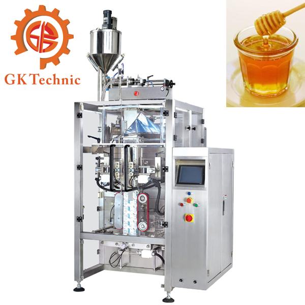 針對(duì)像蜂蜜這種粘稠拉絲又容易結(jié)晶的品料,東莞廣科機(jī)械研制出一款新型的小袋蜂蜜包裝機(jī),這款蜂蜜包裝機(jī)的特色除了速度快,工作安穩(wěn)外,帶雙層保溫桶,不管什么時(shí)節(jié)什么溫度都能確保蜂蜜的濃度和純度,還帶有回吸裝置,能夠讓做出來(lái)的小袋蜂蜜不夾料不漏包。